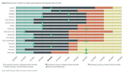 Rents are projected to turn positive in nearly all markets by the end of 2025.