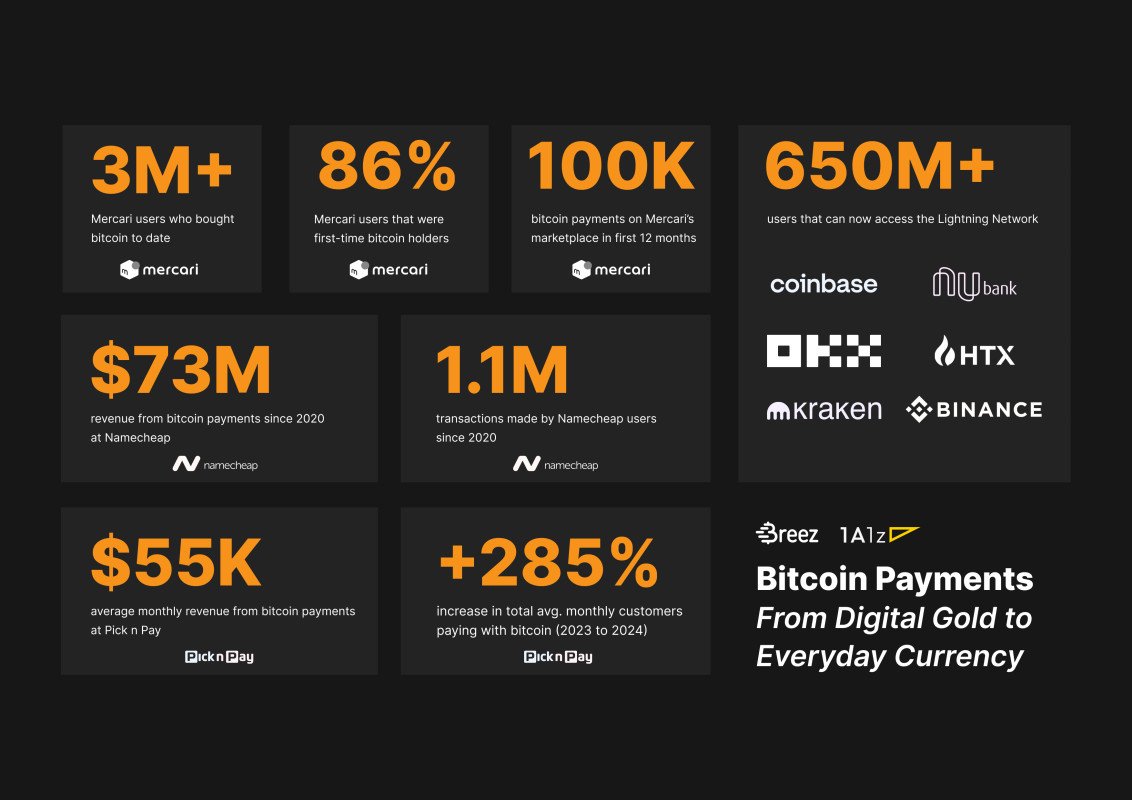 Breez, in partnership with 1A1z, has released a new report investigating the use of Bitcoin as a payments system and transactional currency. Bitcoin has always been painted as digital gold, that is one of the longest running narratives at this point in terms of what Bitcoin actually is. It does capture the use as a long-term investment or speculative asset, and has been a very helpful aid in getting people over the first hump of basic understanding, but it is by no means a comprehensive explanation of what Bitcoin is.