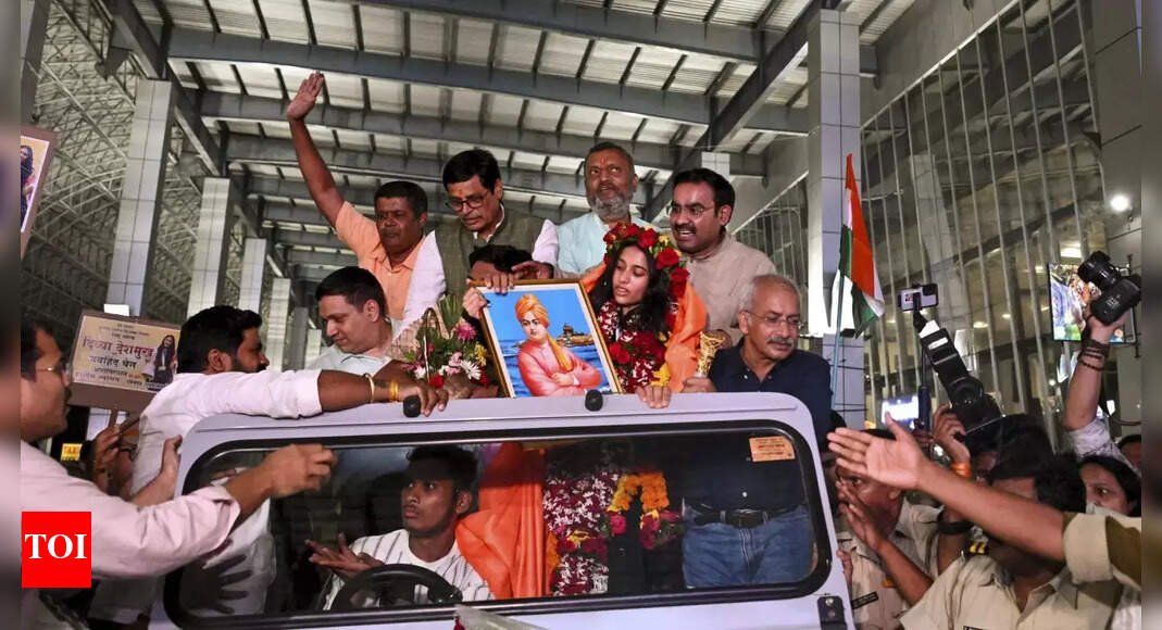 Nineteen-year-old Grandmaster Divya Deshmukh received a grand reception at Nagpur airport on Wednesday after winning the Women’s World Cup title in Batumi, Georgia, where she defeated Indian veteran Koneru Humpy in a tie-breaker following two drawn classical games. The victory earned her the Grandmaster title, a spot in the Candidates tournament, and USD 50,000 in prize money.Deshmukh, who entered the tournament as an underdog aiming for a GM-norm, traveled from Batumi to Mumbai before reaching her hometown Nagpur, accompanied by her mother. Her relatives and fans gathered at the airport well in advance to welcome her.“I am feeling very happy that so many people have come to felicitate me, and chess is getting the recognition,” said Deshmukh upon her arrival.The young champion credited her success to her family and first coach Rahul Joshi, who passed away in 2020 at the age of 40. “My parents have played the biggest role in my career. Without them I would not have reached here. Credit to my family, my parents, my sister, and my first coach, Rahul Joshi sir. He always wanted me to become the Grandmaster, and this is for him,” she said.Expressing gratitude to her family members, she added, “My mother and father had a bigger role to play but definitely my whole family, my sister Arya Deshmukh, my grandmother, grandfather…I don’t think whatever I will say will be enough.”Deshmukh also acknowledged GM Abhijit Kunte’s influence on her success. “Abhijit sir is lucky for me. Wherever he has been with me, I have won the trophy,” she stated.Looking ahead, Deshmukh plans to take a brief break before competing in the Grand Swiss tournament in Samarkand, Uzbekistan, scheduled for September 2-16. “I will take some rest this month and will play Grand Swiss next month,” she confirmed.