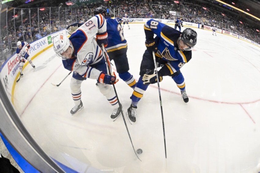 That strong play carried over to the Blues this season. Holloway set career highs with 63 points (26 goals and 37 assists) in 77 games playing top-six minutes for the Blues under head coach Jim Montgomery. Meanwhile, Broberg, before his injury, was proving why the Oilers needed to keep him the way he slotted into the Blues’ top four so seamlessly. Broberg finished the season averaging around 16 minutes of ice time, recording career highs with 29 points (eight goals and 21 assists) in 68 games.