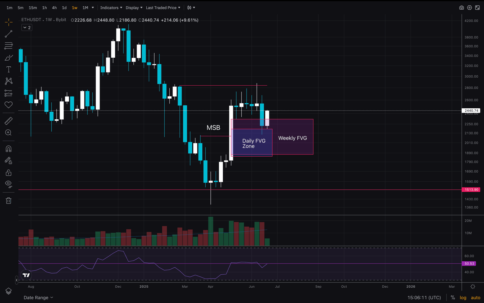 Check out last week’s article here. I purposely kept all the drawings on the charts and have not added anything. This is a good exercise as you learn to do technical analysis. The pair has successfully filled both FVG zones and is starting the week with great strength. Will the Bulls be able to keep the momentum going?