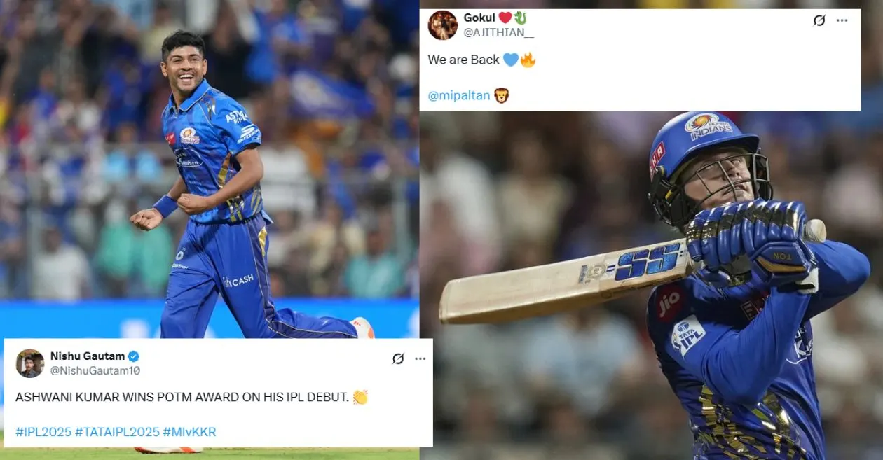 Mumbai Indians (MI) finally broke their winless streak in IPL 2025 with a stunning performance against Kolkata Knight Riders (KKR) at the Wankhede Stadium. The match saw debutant Ashwani Kumar deliver a sensational bowling spell, while Ryan Rickelton anchored the chase with a rapid fifty, as MI cruised to an eight-wicket victory with 43 balls to spare.