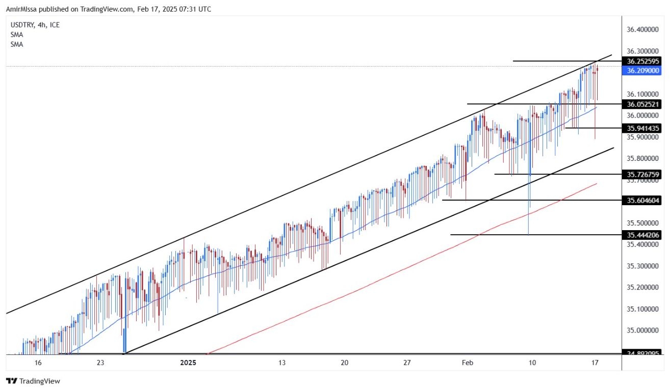On the technical side, the USD/TRY pair continues to trade in the same sluggish upward trend. A state of pessimism about the future expectations of the Turkish Lira price continues. Technically, the US dollar is trading within a general upward trend against the lira. The dollar is supported by trading within an upward price channel, coinciding with the price moving above the 50 and 200-day moving averages, respectively. Clearly, that’s indicating the dominance of the overall upward trend in the pair’s movements in the long term. Currently, any decline in the pair represents an opportunity to buy again. The pair targets levels of 36.25 lira and 36.55 lira, respectively.