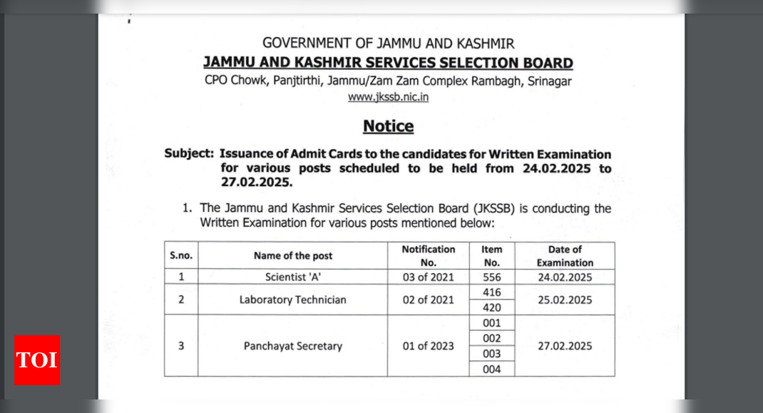 JKSSB admit card 2025: The Jammu and Kashmir Services Selection Board (JKSSB) has released the hall tickets for various posts on the official website, jkssb.nic.in. Candidates who have registered for the exam can visit the official website to download the call letters. Aspirants will need to enter their E-mail ID and password to access the admit card. Aspirants are advised to check the hall tickets thoroughly for all the details to avoid any hassle on the exam day.