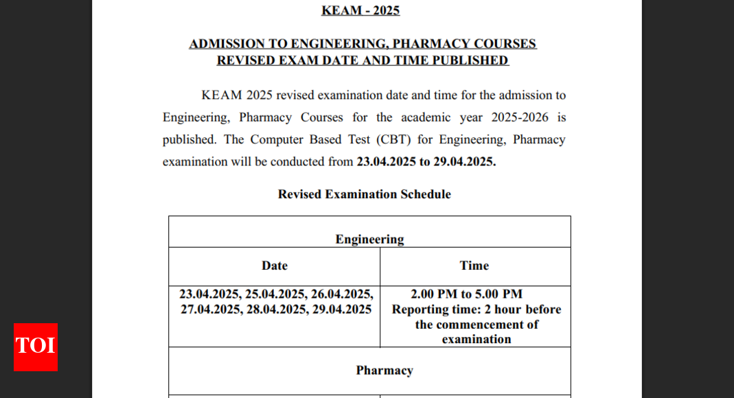 KEAM exam dates 2025 revised: The Commissioner for Entrance Examinations (CEE) Kerala has announced a revised schedule for the KEAM 2025 exam for both the Engineering and Pharmacy entrance examinations 2025. The Computer-Based Test (CBT) exam, which was earlier scheduled from April 24 to 28, will now be held on different dates.