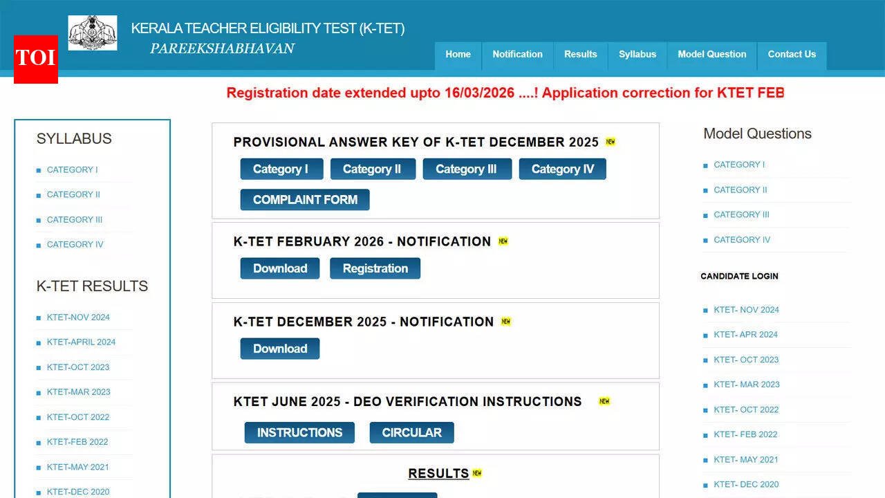 KTET February 2026: Kerala Pareeksha Bhavan has announced that the registration deadline for the KTET February 2026 session has been extended to March 16, 2026. Candidates who have not yet completed the application process now have additional time to submit their forms. The extension aims to provide adequate opportunity for eligible candidates to register and ensure their participation in the upcoming Kerala Teacher Eligibility Test (KTET).Candidates who have already applied can make necessary corrections through the official candidate login portal. The application correction facility allows candidates to update details such as personal information, category selection, and examination centre choices. Corrections must be completed before the revised deadline to be considered valid.KTET February 2026 registration details