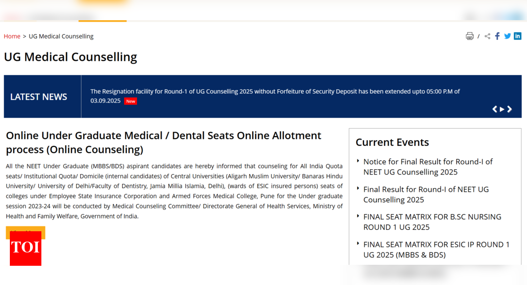 NEET UG Counselling 2025: The Medical Counselling Committee (MCC) has granted NEET UG 2025 candidates additional time to reconsider their choices by extending the Round 1 seat resignation deadline to September 3, 2025, 5:00 PM. This decision allows students to withdraw from their allotted seats without forfeiting the security deposit, providing relief amid the intense pressure of medical admissions. The move comes as part of MCC’s efforts to ensure a fair, transparent, and candidate-friendly counselling process, giving aspirants more flexibility to make informed decisions about their preferred colleges and courses.