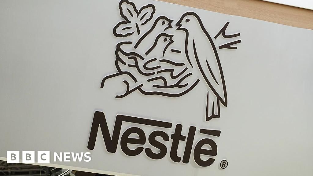 Getty Images The Nestle logo, featuring a bird feeding its two chicks in a nest. Getty Images