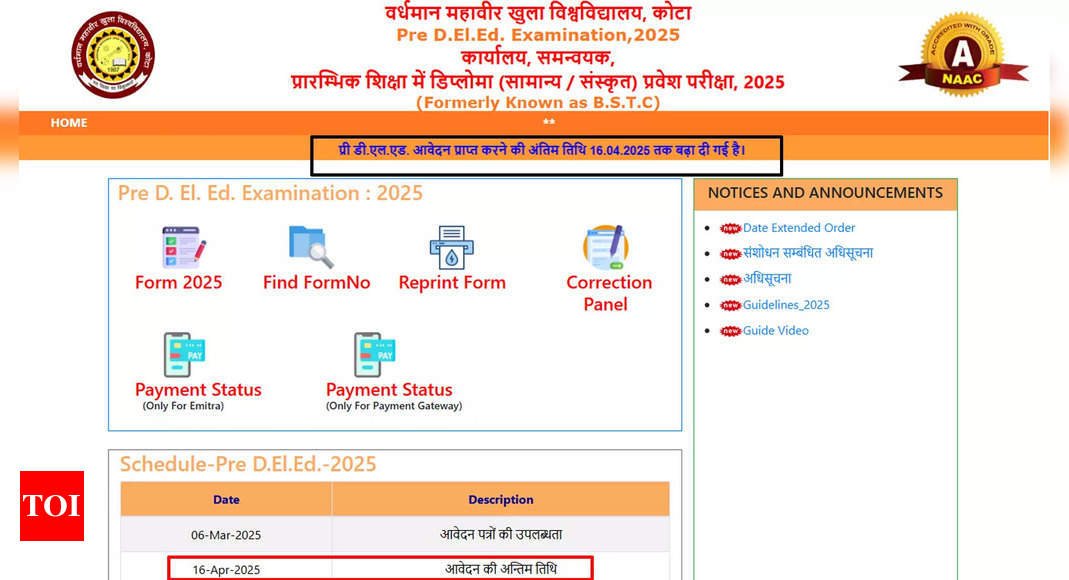 In light of this overwhelming interest, Vardhman Mahaveer Open University (VMO University), Kota, has announced an extension of the last date for submission of online applications. Candidates can now apply until April 16, 2025, through the official website predeledraj2025.in. The earlier deadline was April 11, 2025. A correction window will be available on April 17, 2025, with a correction fee of Rs 100 applicable.