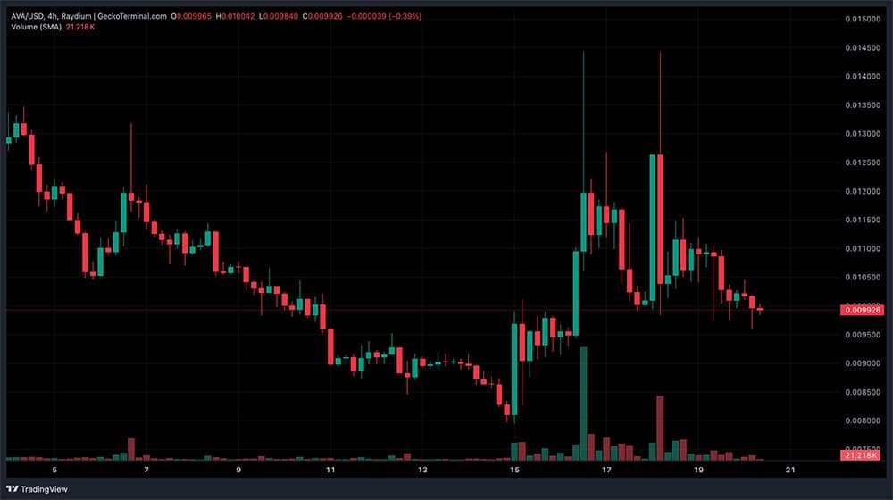 Solana AI crypto Ava (AVA) crashed more than 96% from its January high after on‑chain analysts reportedly linked around 40% of the supply to coordinated “insider” wallets at launch.