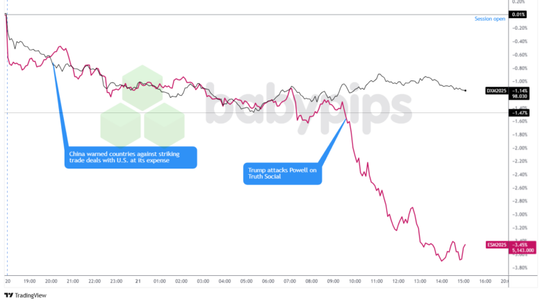 The U.S. dollar slumped to its lowest level since late 2023 on Monday, primarily driven by China’s warning that it would retaliate against nations cooperating with the U.S. in trade deals that compromise Beijing’s interests. President Trump’s renewed criticism of Fed Chair Jerome Powell further pressured the greenback, capping recovery attempts in early U.S. trading.