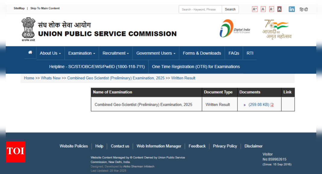 UPSC Combined Geo-Scientist prelims result 2025: The Union Public Service Commission (UPSC) has declared the Combined Geo-Scientist (Preliminary) Examination 2025 results. Candidates who appeared for the exam can check their UPSC Combined Geo-Scientist Prelims result 2025 on the official website, upsc.gov.in. The exam was held on February 9, 2025.