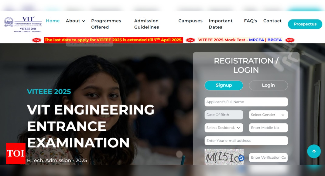 VITEEE registration 2025: Vellore Institute of Technology (VIT) will close the online application process for its engineering entrance exam—VITEEE 2025—today, April 7. Aspiring candidates who have not yet registered can still fill out and submit their applications at viteee.vit.ac.in. To be eligible for VITEEE 2025, applicants must have been born on or after July 1, 2003. The date of birth will be verified using the candidate’s high school certificates.