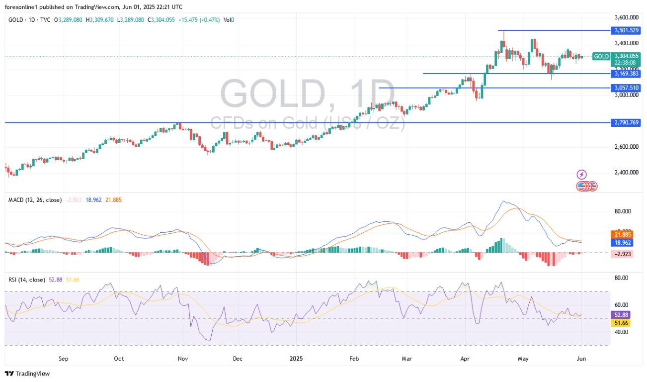 Dear reader, as is clear on the daily timeframe chart and from today’s gold analysts’ forecasts, the overall upward trend will remain stronger with gold prices stabilizing above the $3300 per ounce resistance. With this performance, the 14-day Relative Strength Index (RSI) is stable above the midline, supporting the upward shift. At the same time, the MACD indicator lines are in a neutral position with an upward bias. The future outlook for gold prices in the coming days will remain subject to investor sentiment regarding risk appetite (or lack thereof) due to global trade and geopolitical tensions, in addition to the announced figures for central bank gold bullion purchases. Accordingly, the strategy of buying gold on dips will remain the most important and strongest for some time.